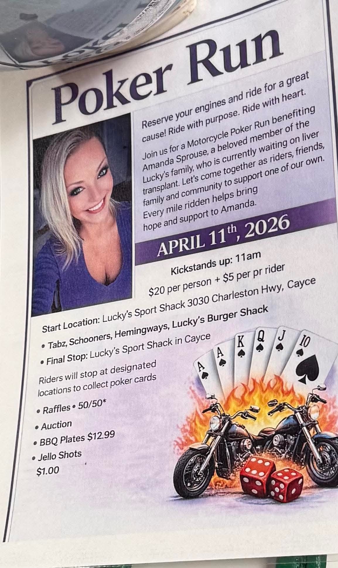 Poker Run For Amanda Sprouse | 04/11/2026 | 04/11/2026 | Charity / Benefit / Bike Blessing | Cayce SC USA |